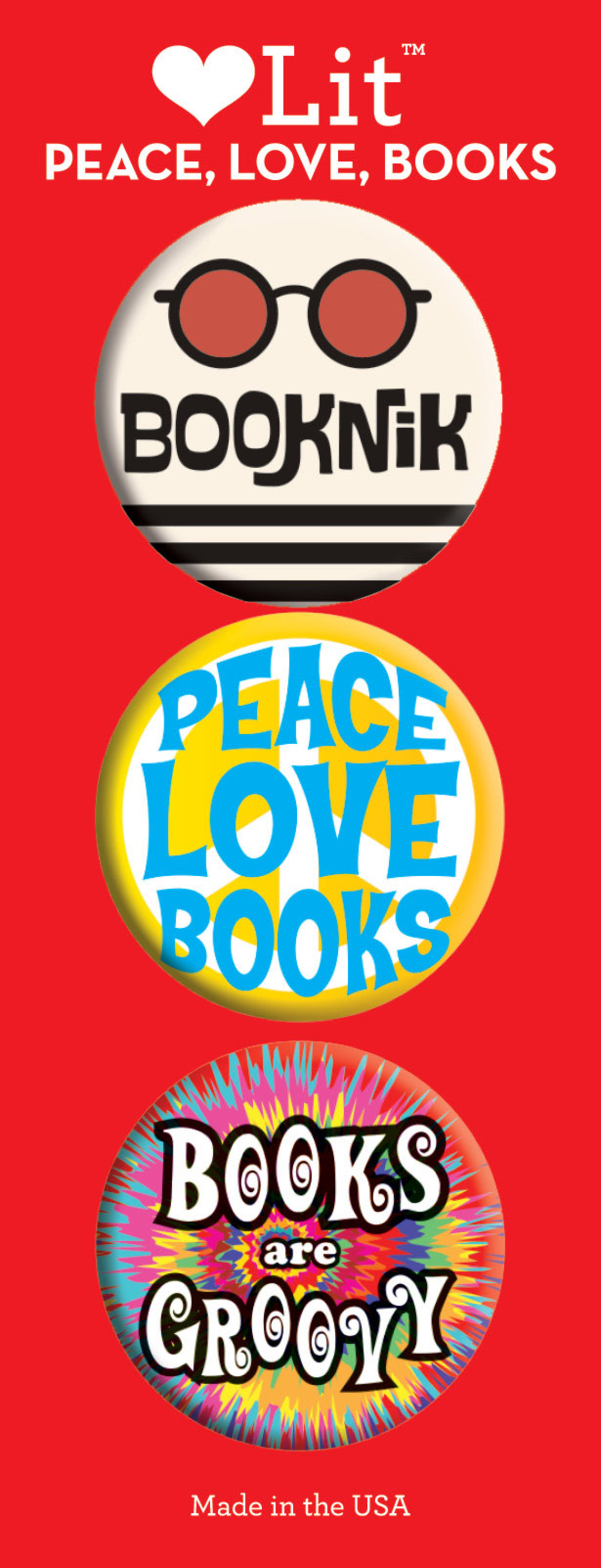 PEACE, LOVE, BOOKS 3-BUTTON ASSORTMENT
