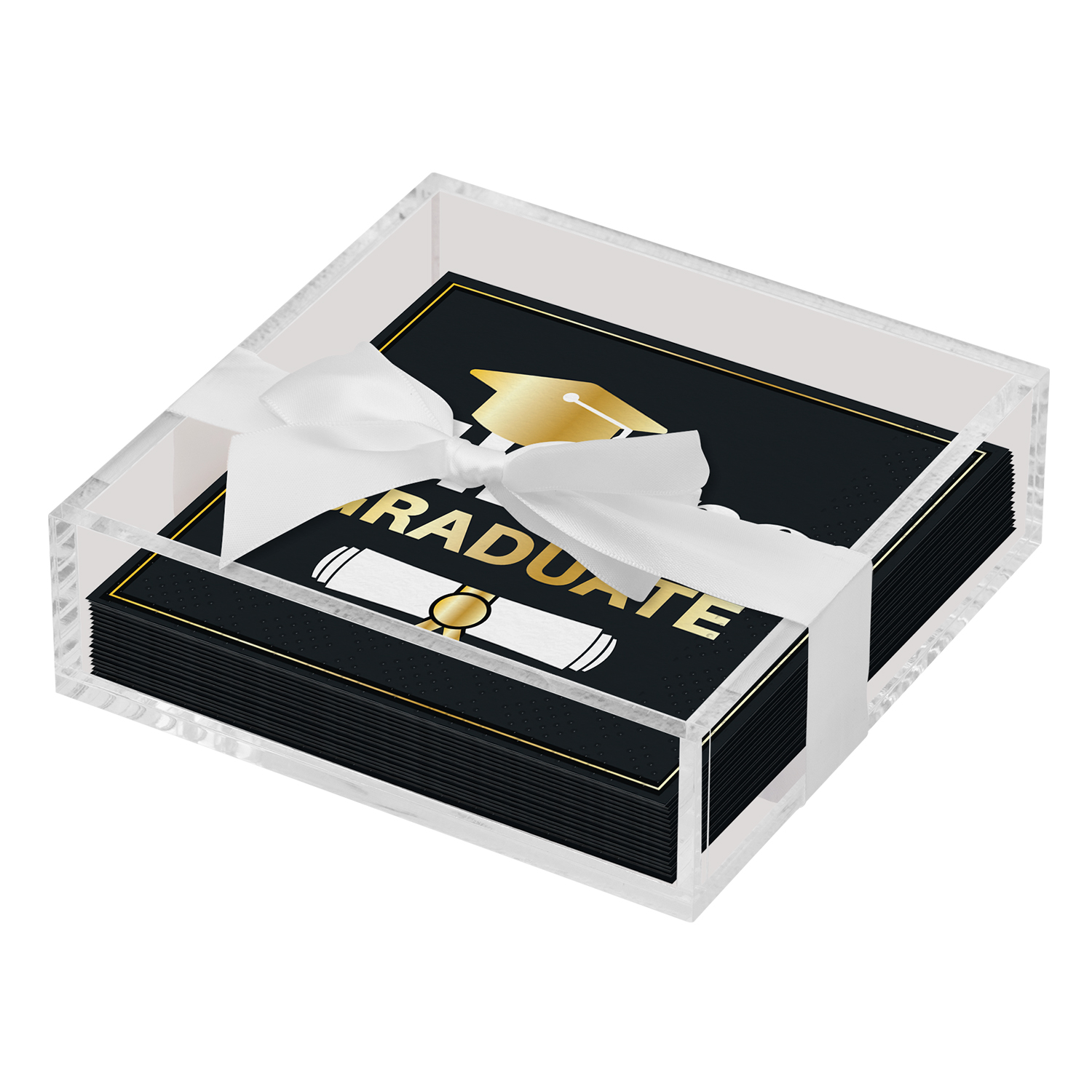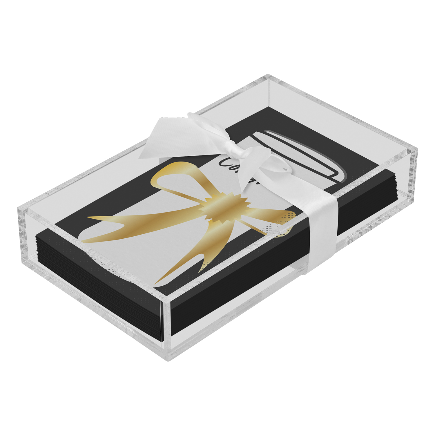 Acrylic Napkin Tray, Clear with Cocktail Napkin -