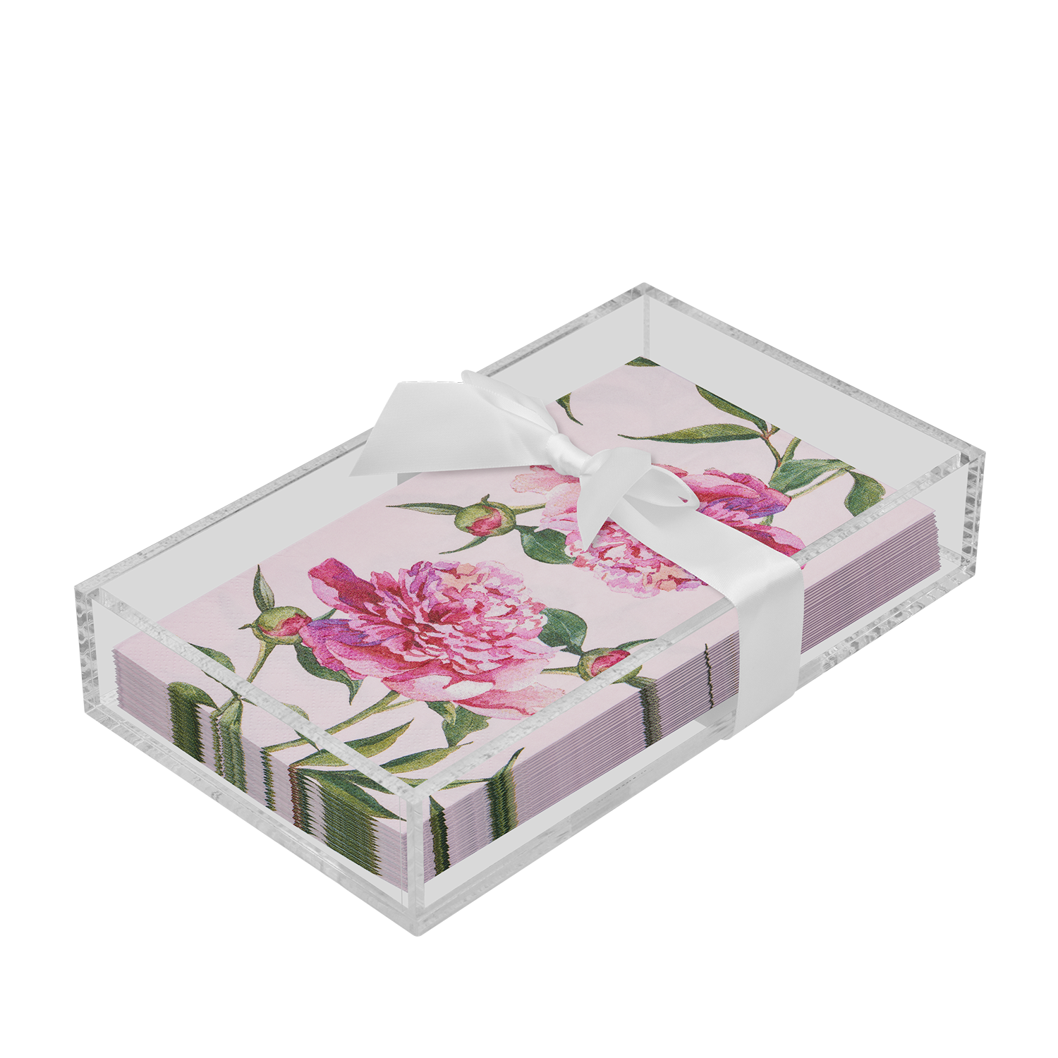 Acrylic Napkin Tray, clear with Guest Towel - Pink