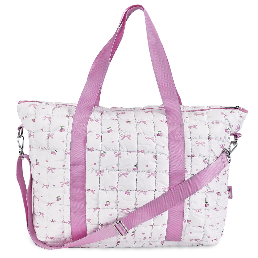 White Scrunchie Puffer Tote with Cherry/Bow Patter