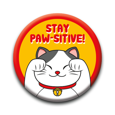 Lucky Cat - Stay Pawsitive Round Pinback Button (1