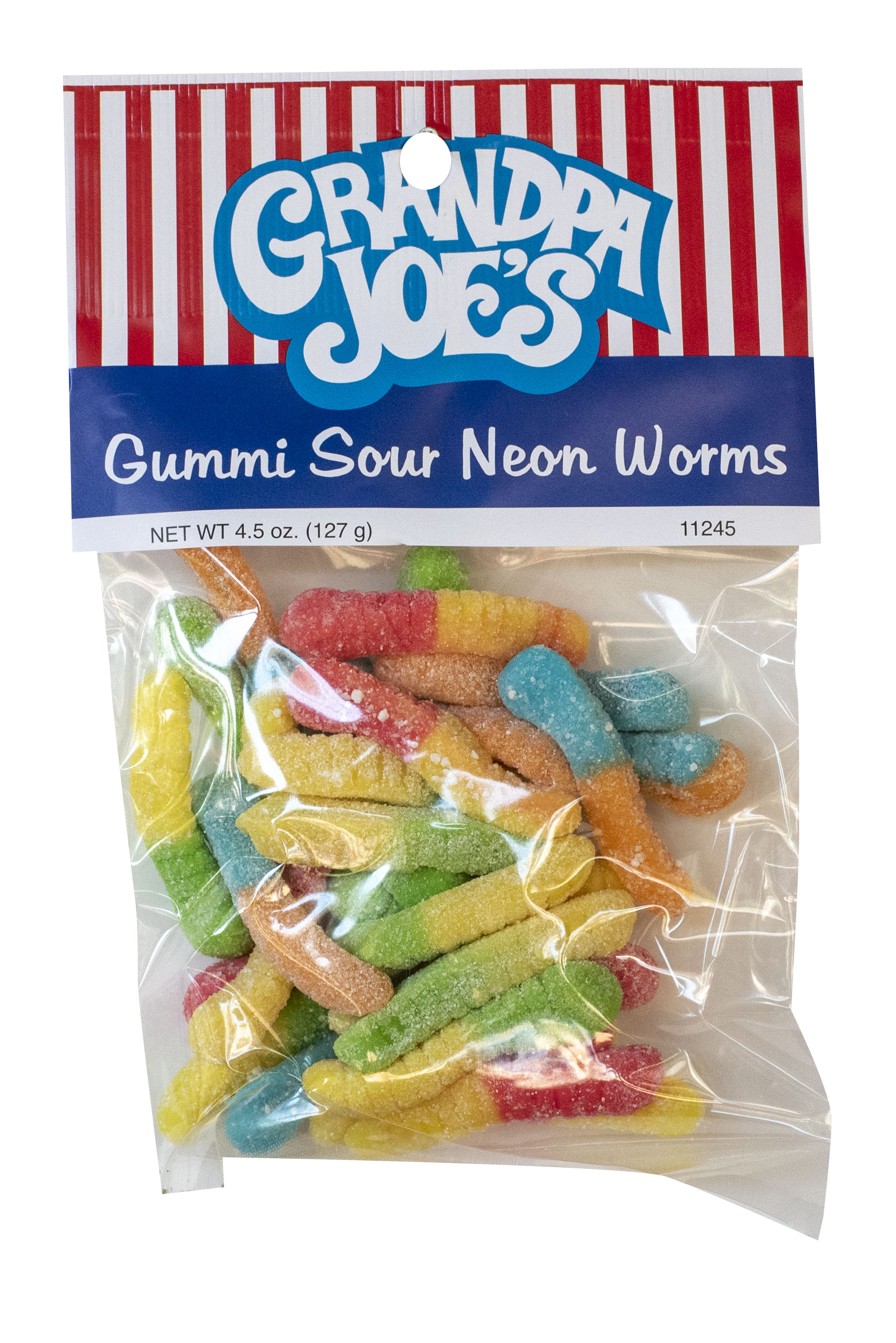 Grandpa Joe's Sour Neon Worms, 4.5oz Bag, 12ct