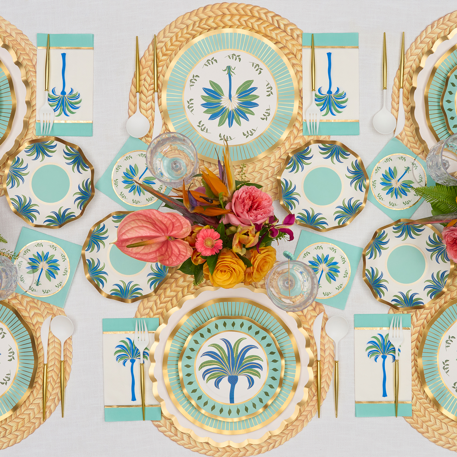 Dahlia Garden Salad Plate 8pkg, 8" Gold Foil