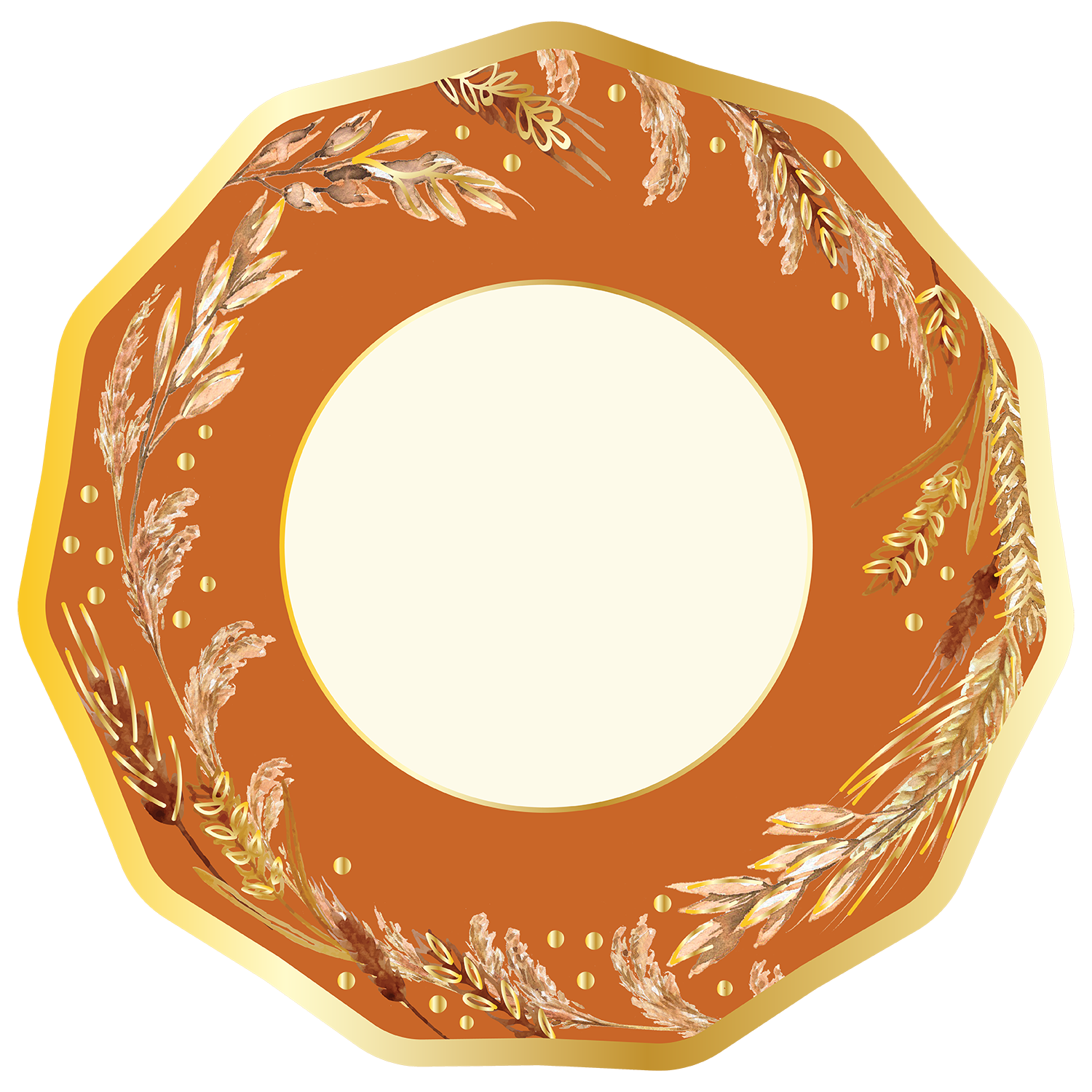 Harvest Wheat Dinner Plate- 8pkg, Gold Foil