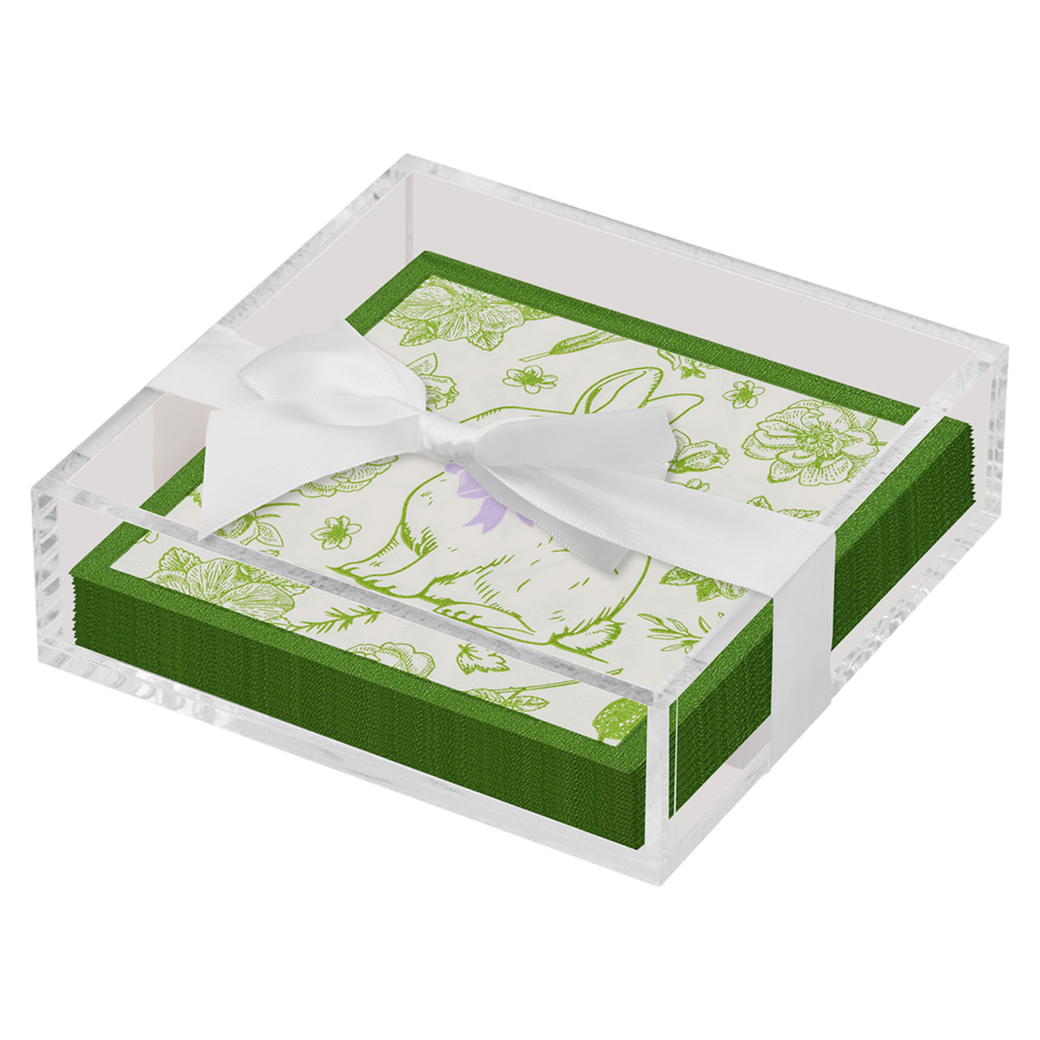 Acrylic Napkin Tray, Clear w/ Cocktail Napkin - Ch