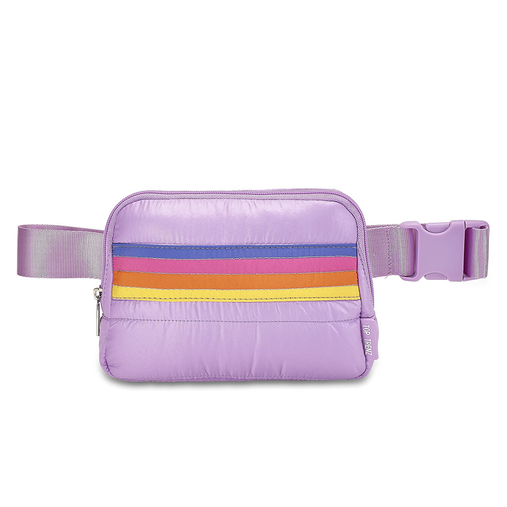 Purple Puffer Retro Striped Belt Bag