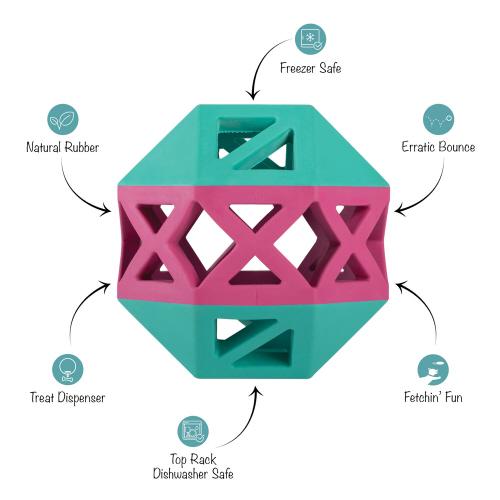 STICK WITH ME TURQUOISE/HOT PINK RUBBER DOG TOY
