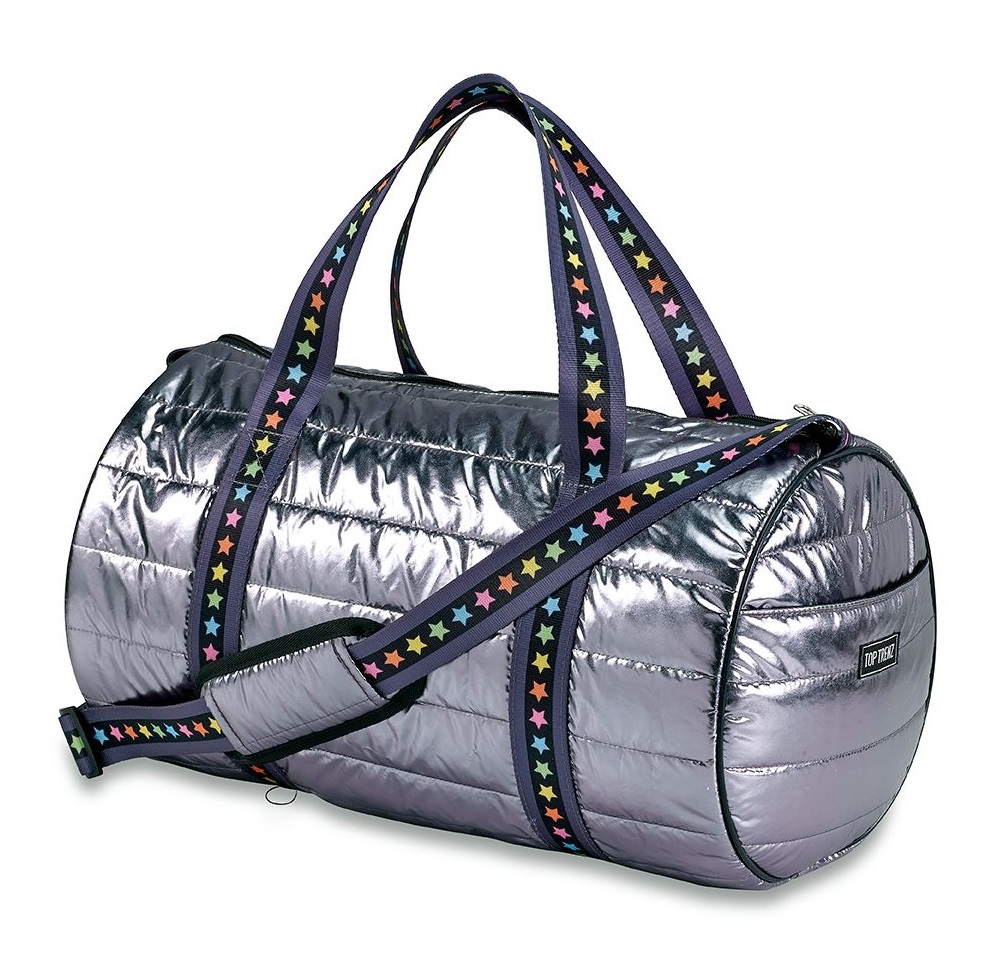 Puffer Duffel Bag Gunmetal With Multi Star Strap