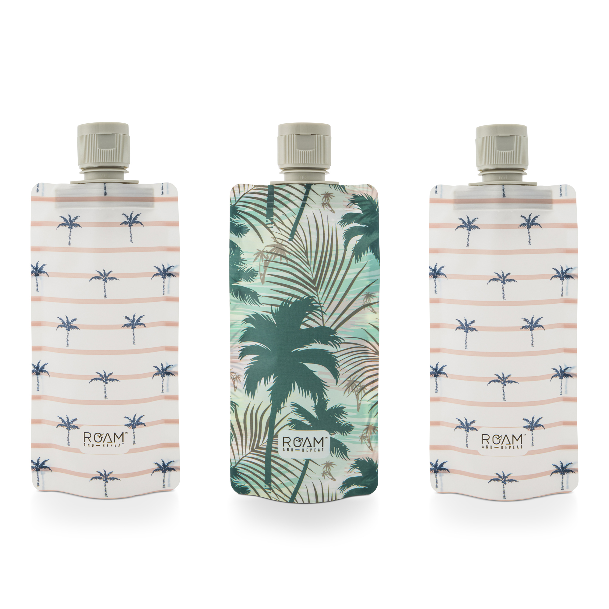 3pc 3oz RR Flat Travel Bottles - Stripe Palm