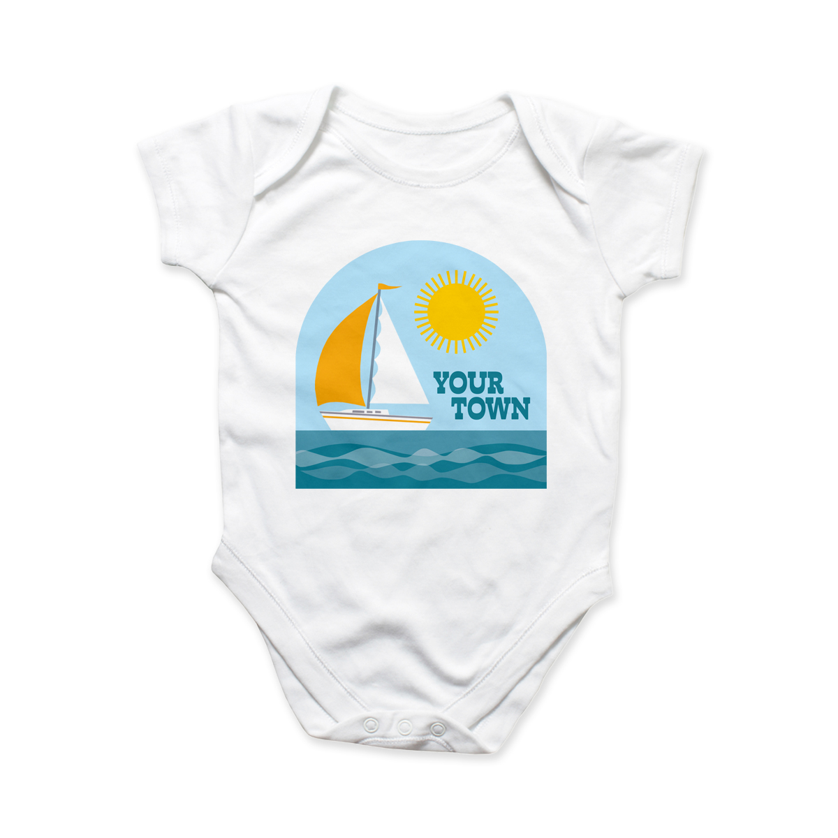 White Onesie - View - Sailboat - Size L/12mo