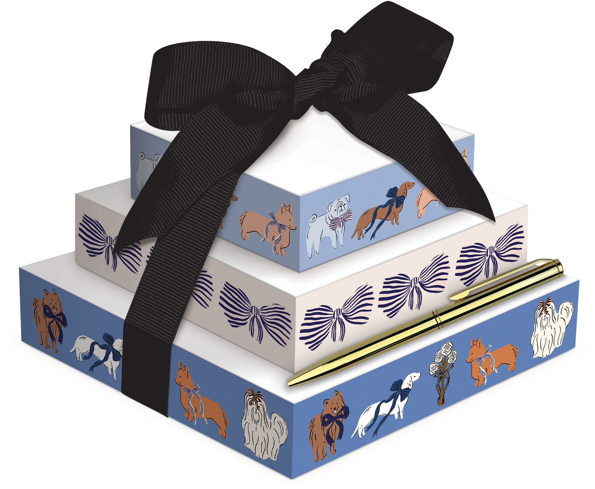 RIBBON TAILS DOG NOTEPAD TOWER W METAL PEN-200SH