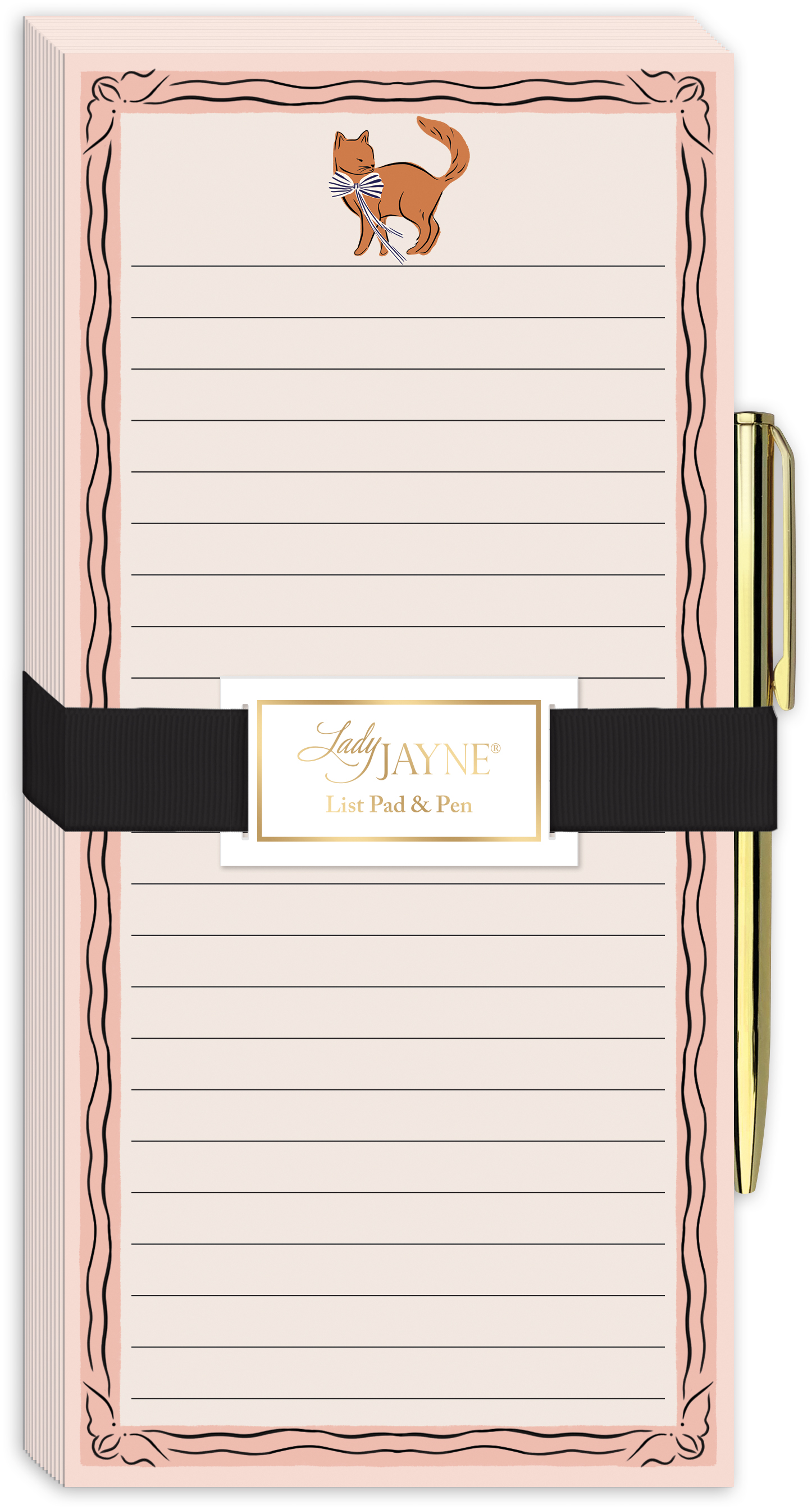 RIBBON TAILS ORANGE CAT NOTEPAD MGNTC W METAL PEN-