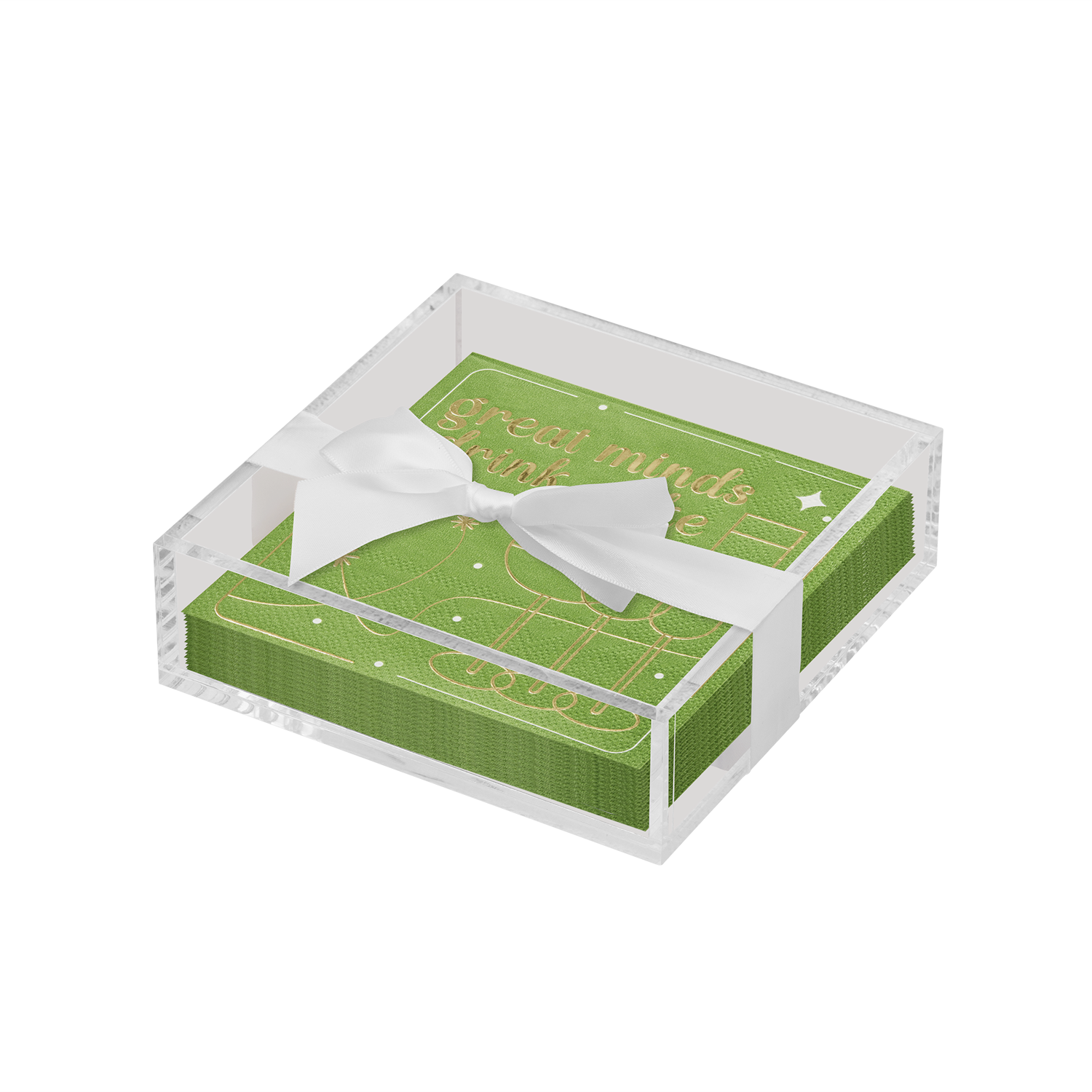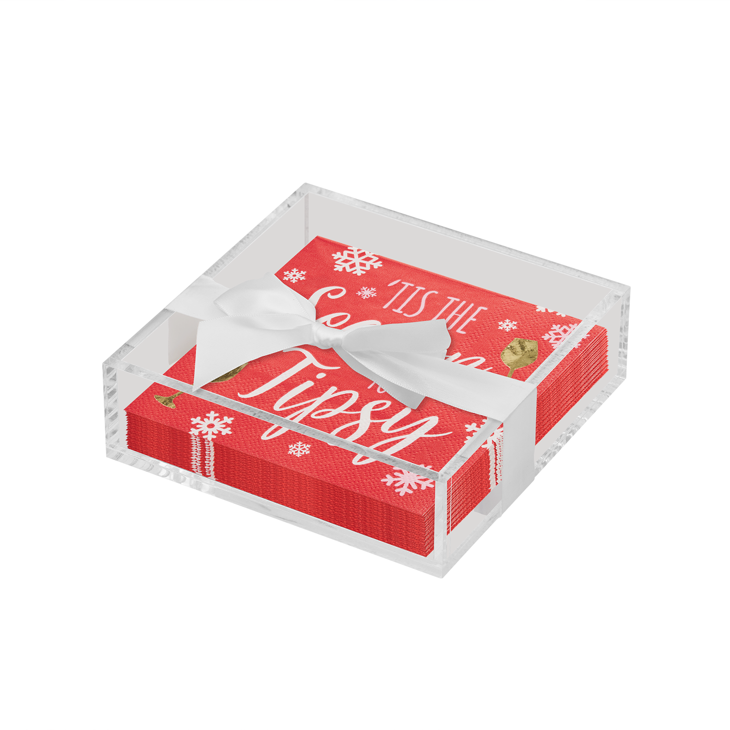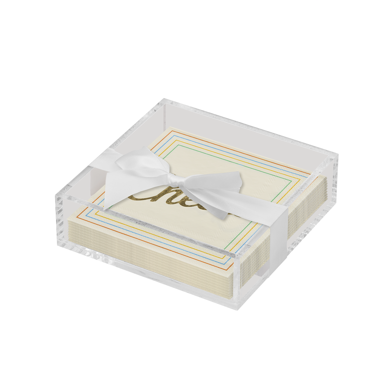 Acrylic Napkin Tray, Clear w/ Cocktail Napkin - Ch
