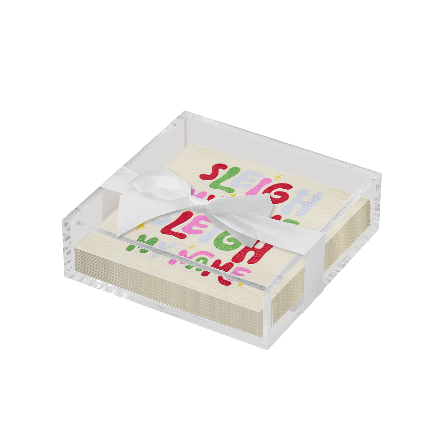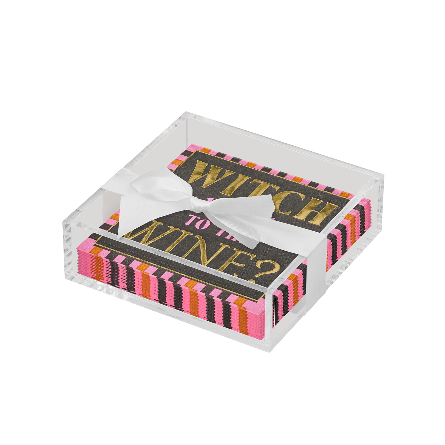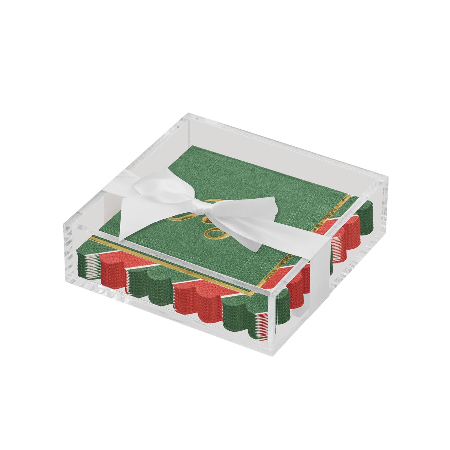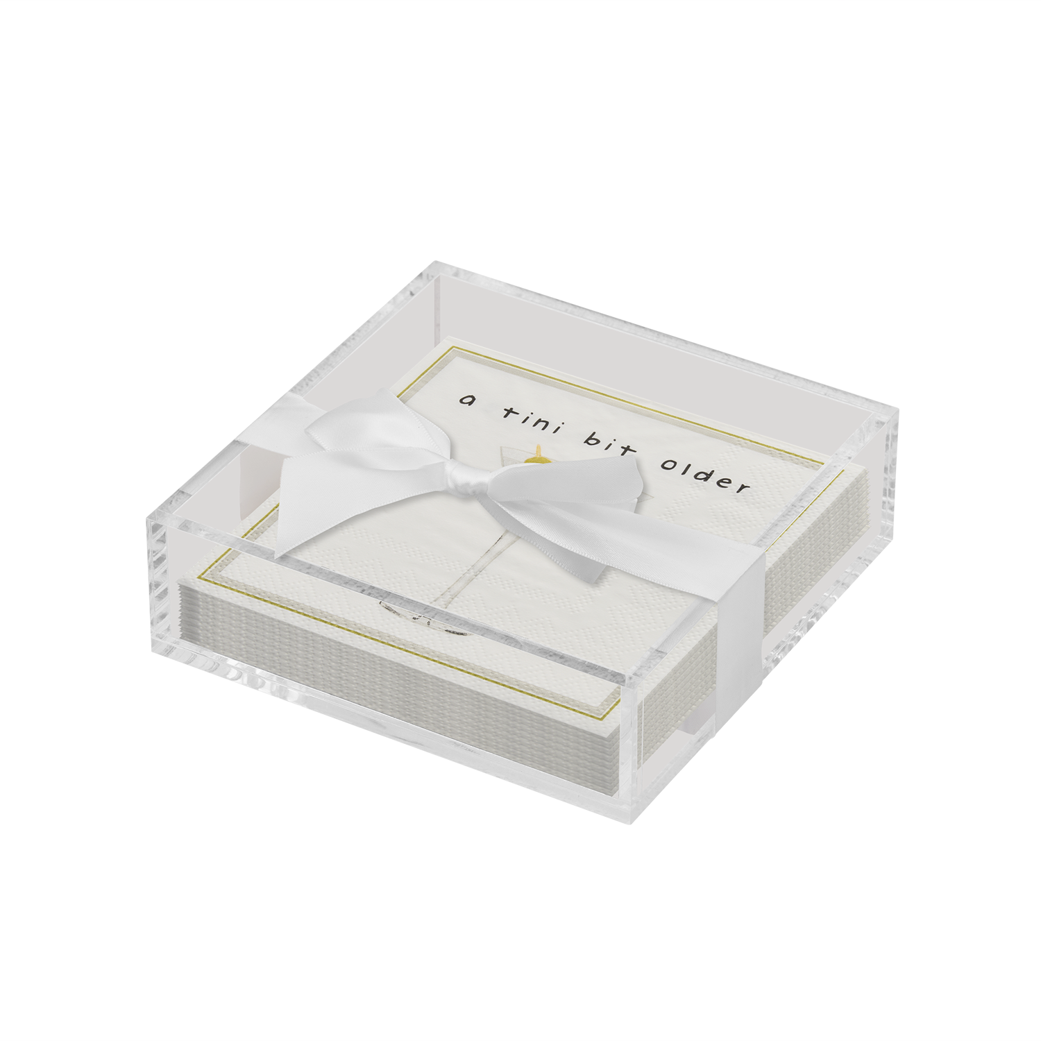 Acrylic Napkin Tray, Clear w/ Cocktail Napkin - Ch