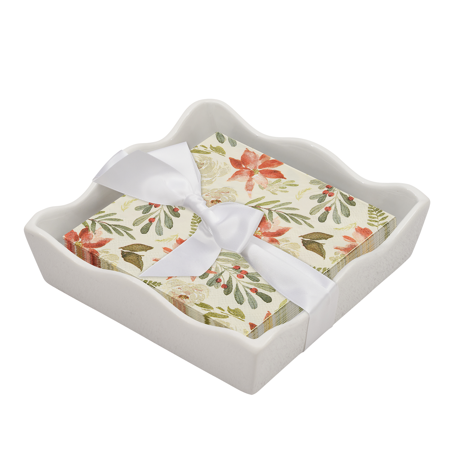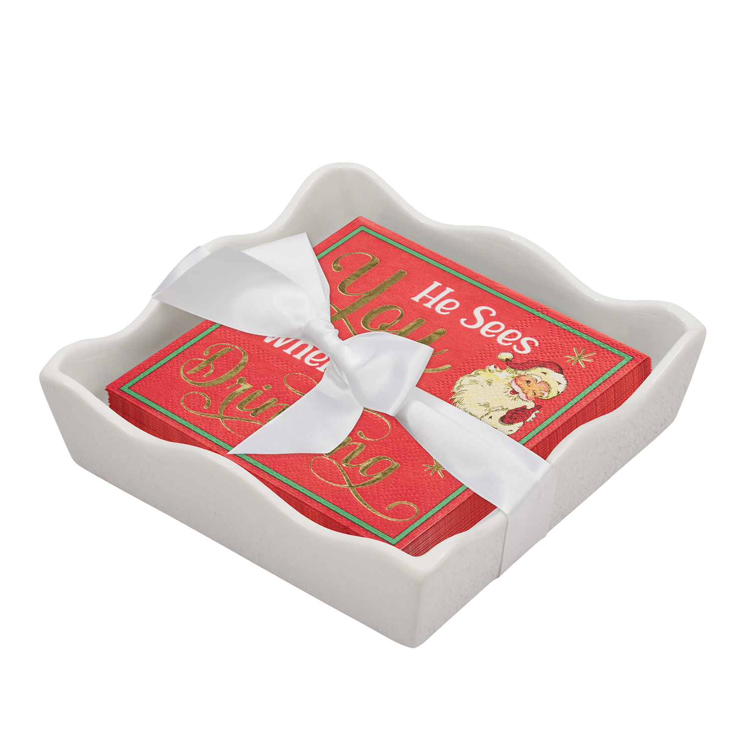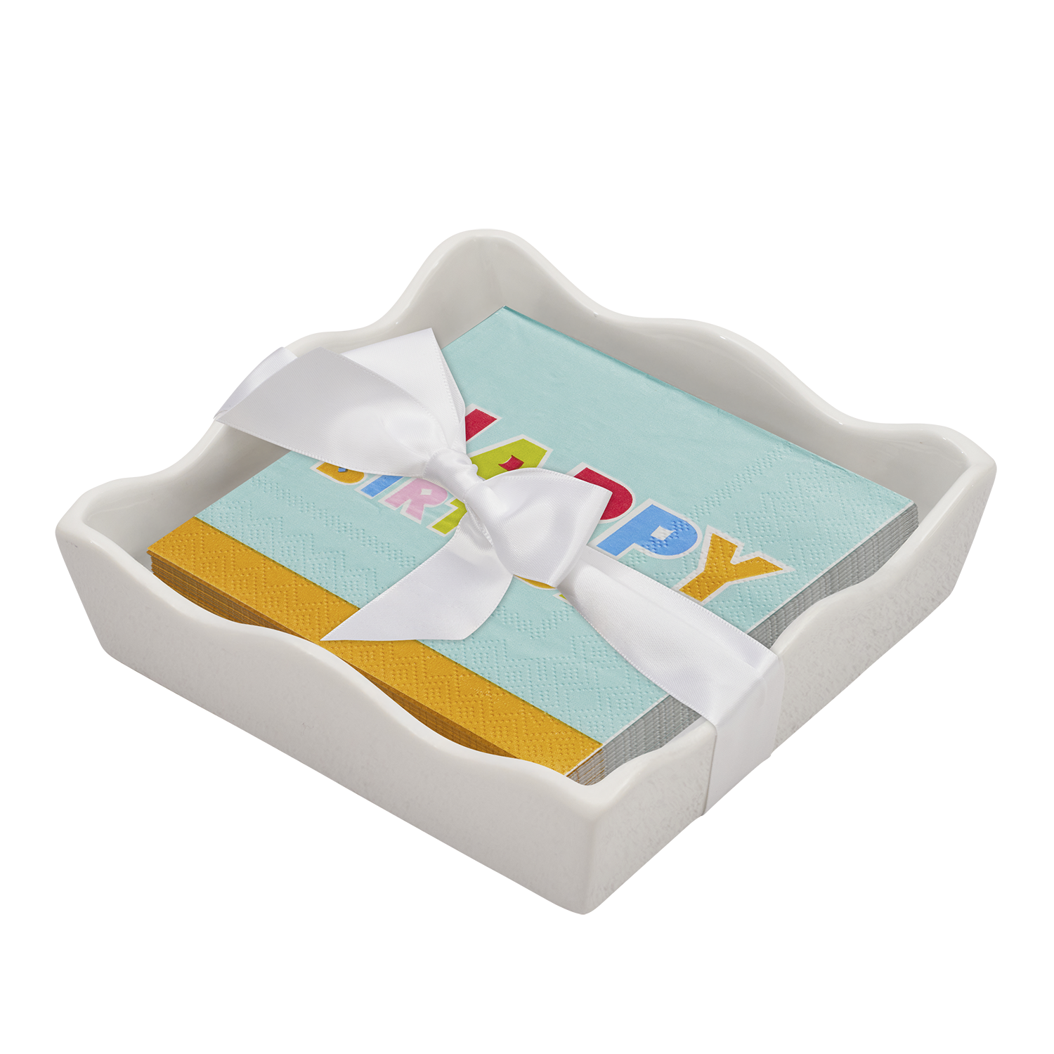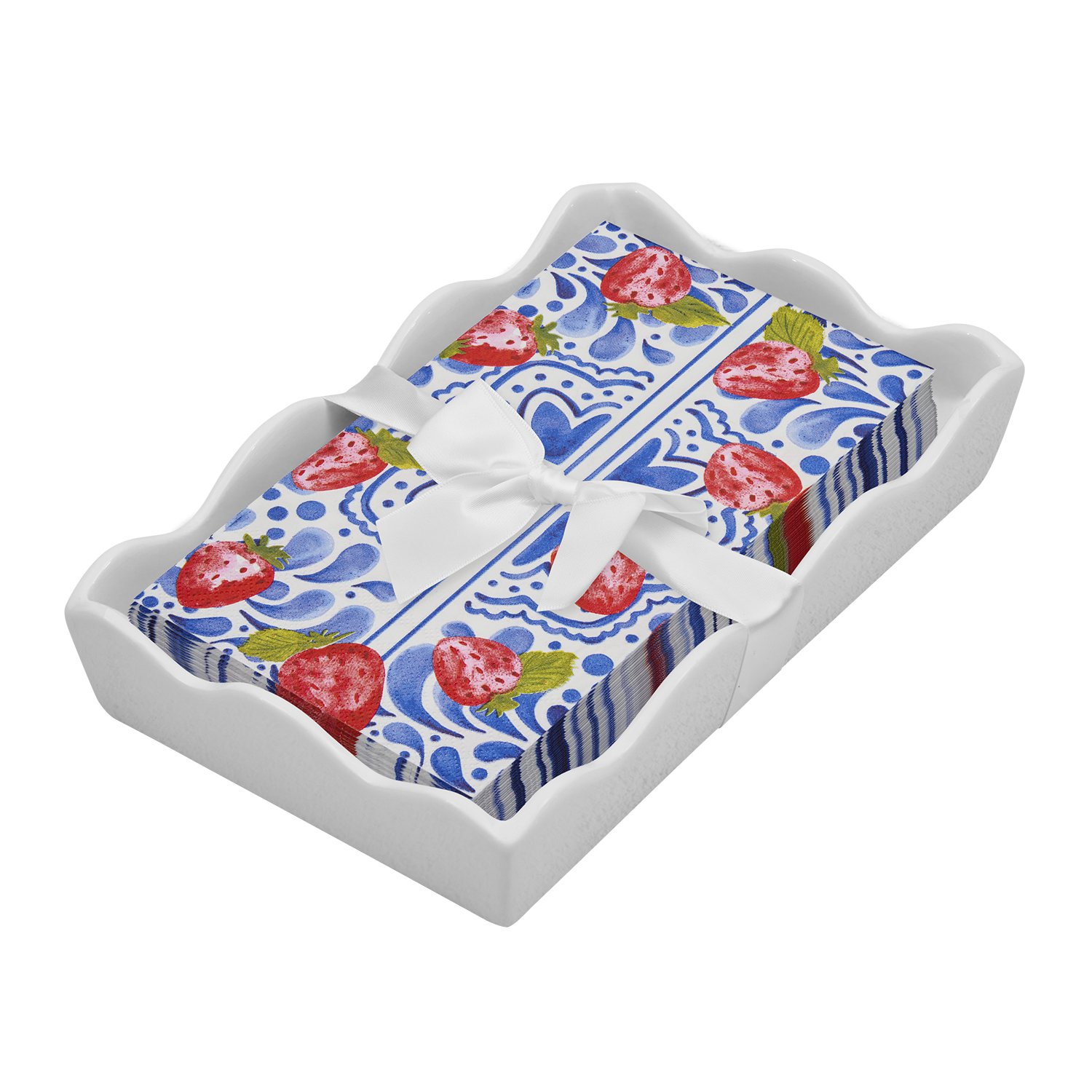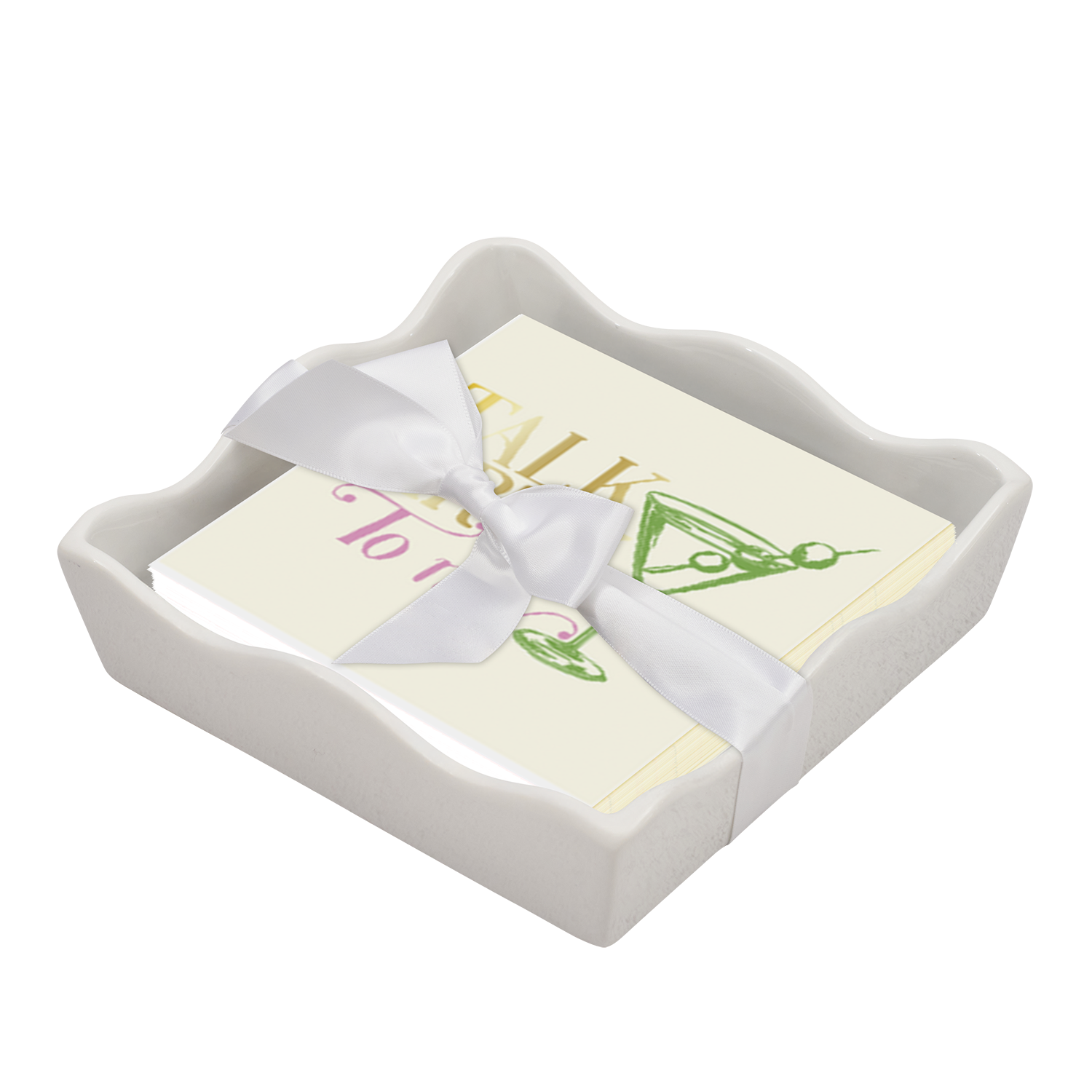 Ceramic Wave Napkin Tray w/ Cocktail Napkin - Chri