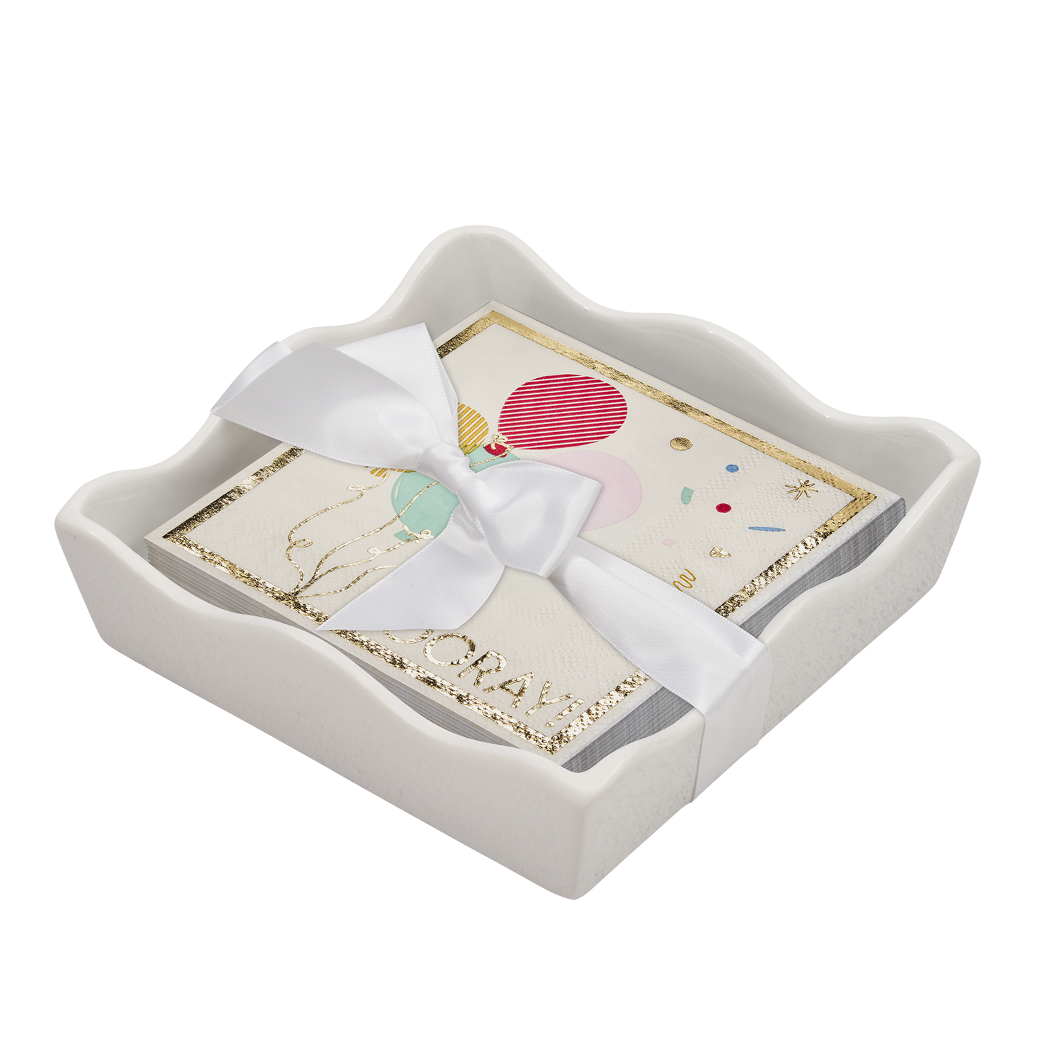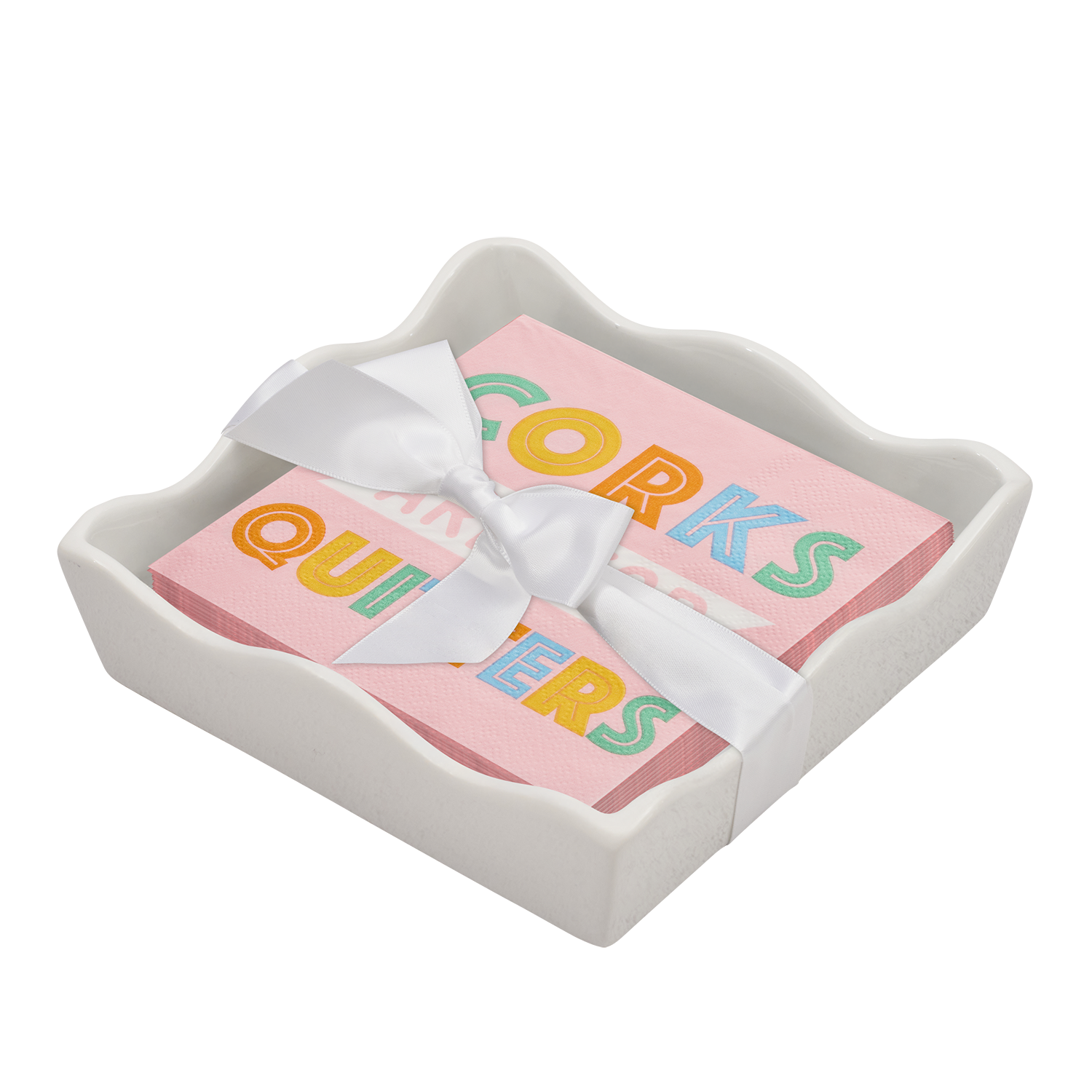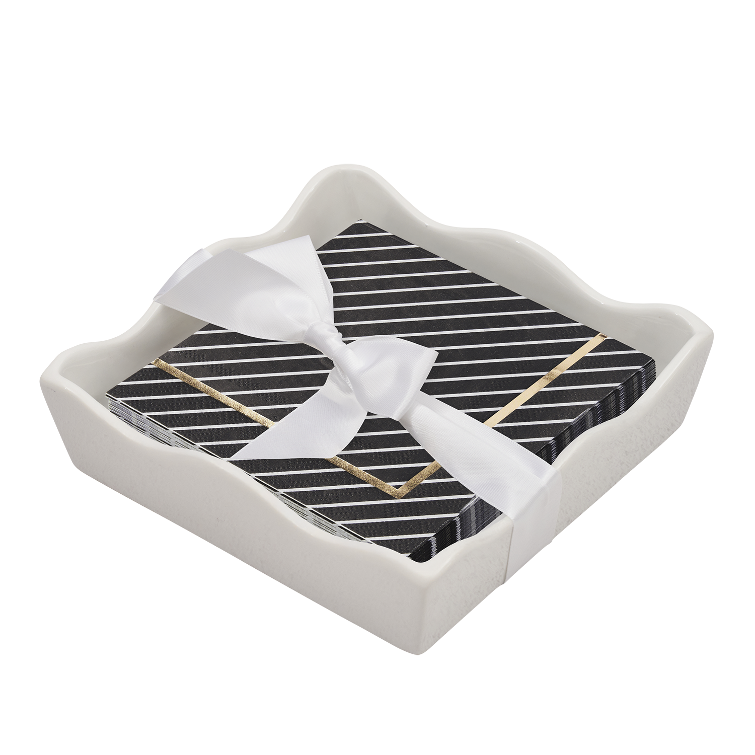 Ceramic Wave Napkin Tray with Cocktail Napkin - Co