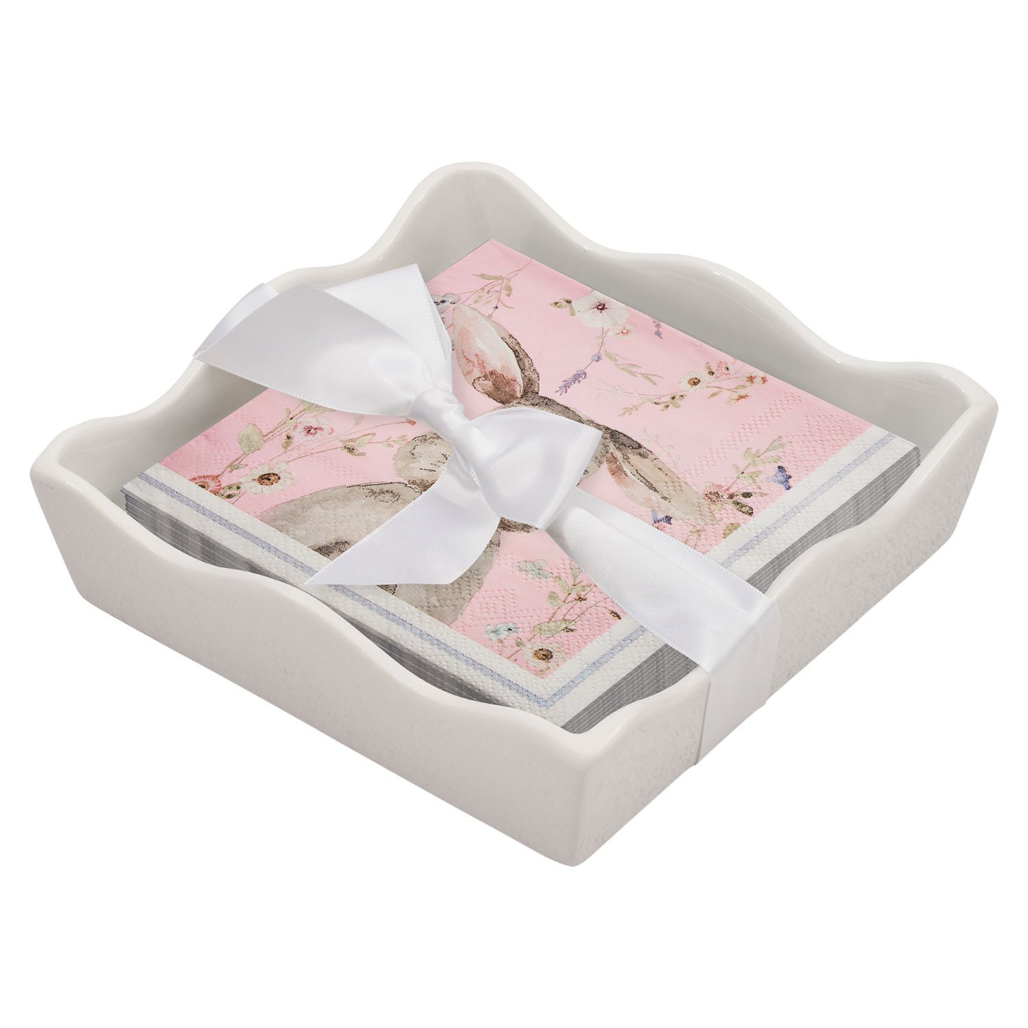 Ceramic Wave Napkin Tray with Cocktail Napkin - Ev