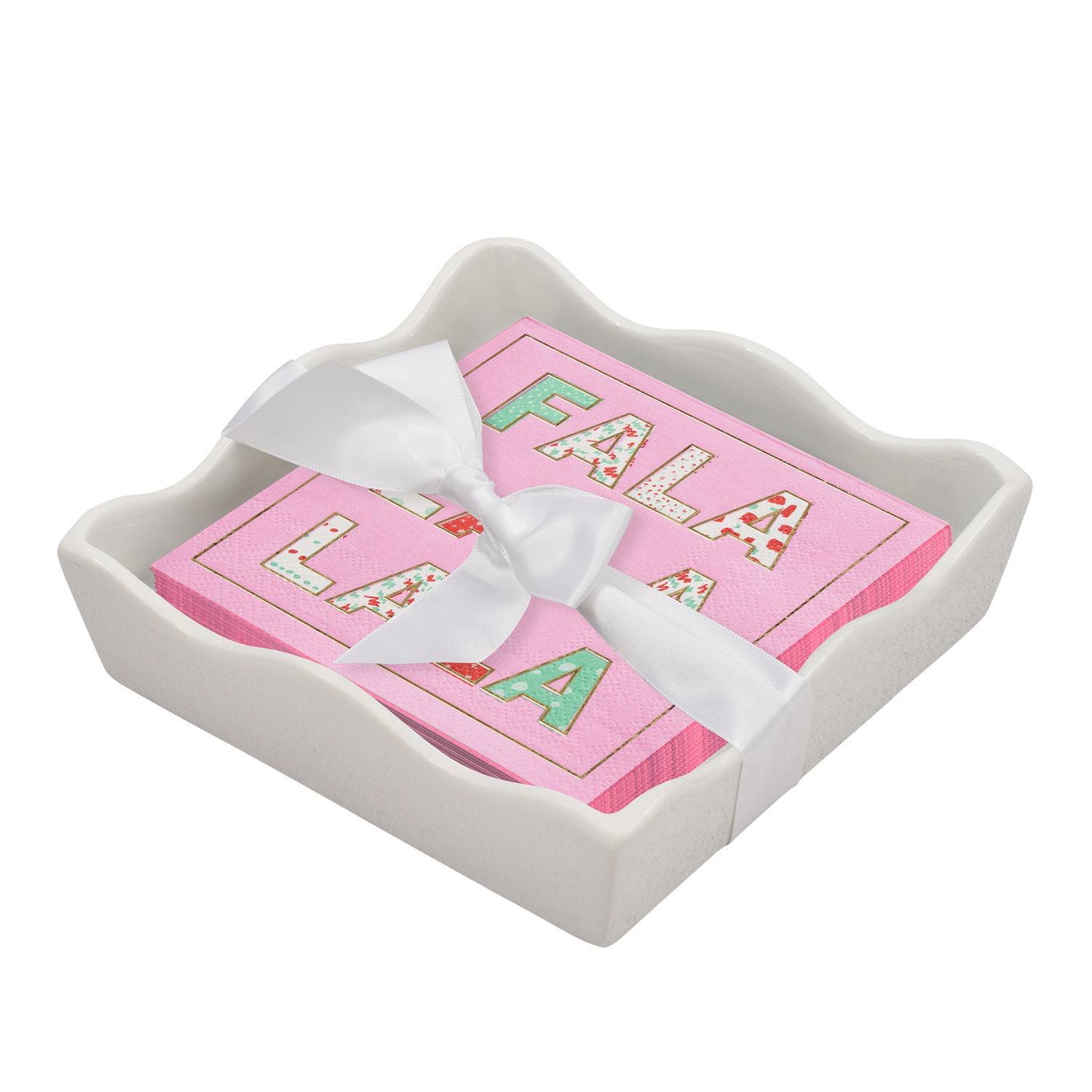 Ceramic Wave Napkin Tray with Cocktail Napkin - Le