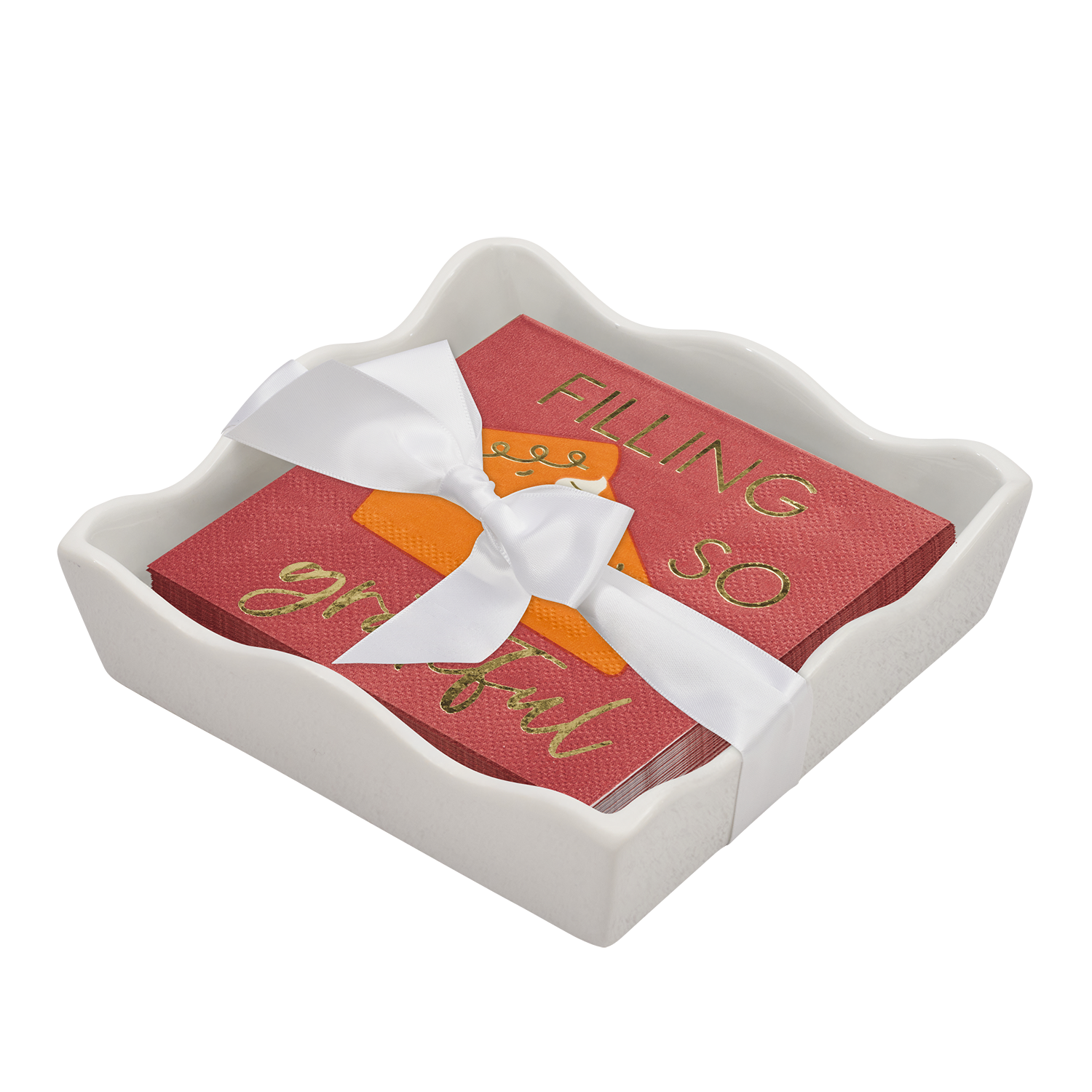 Ceramic Wave Napkin Tray with Cocktail Napkin - Ch
