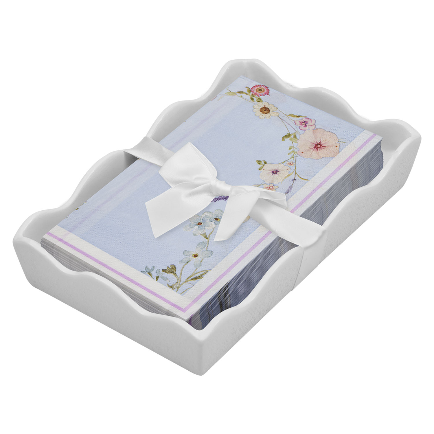 Ceramic Wave Napkin Tray with Guest Towel - Charmi