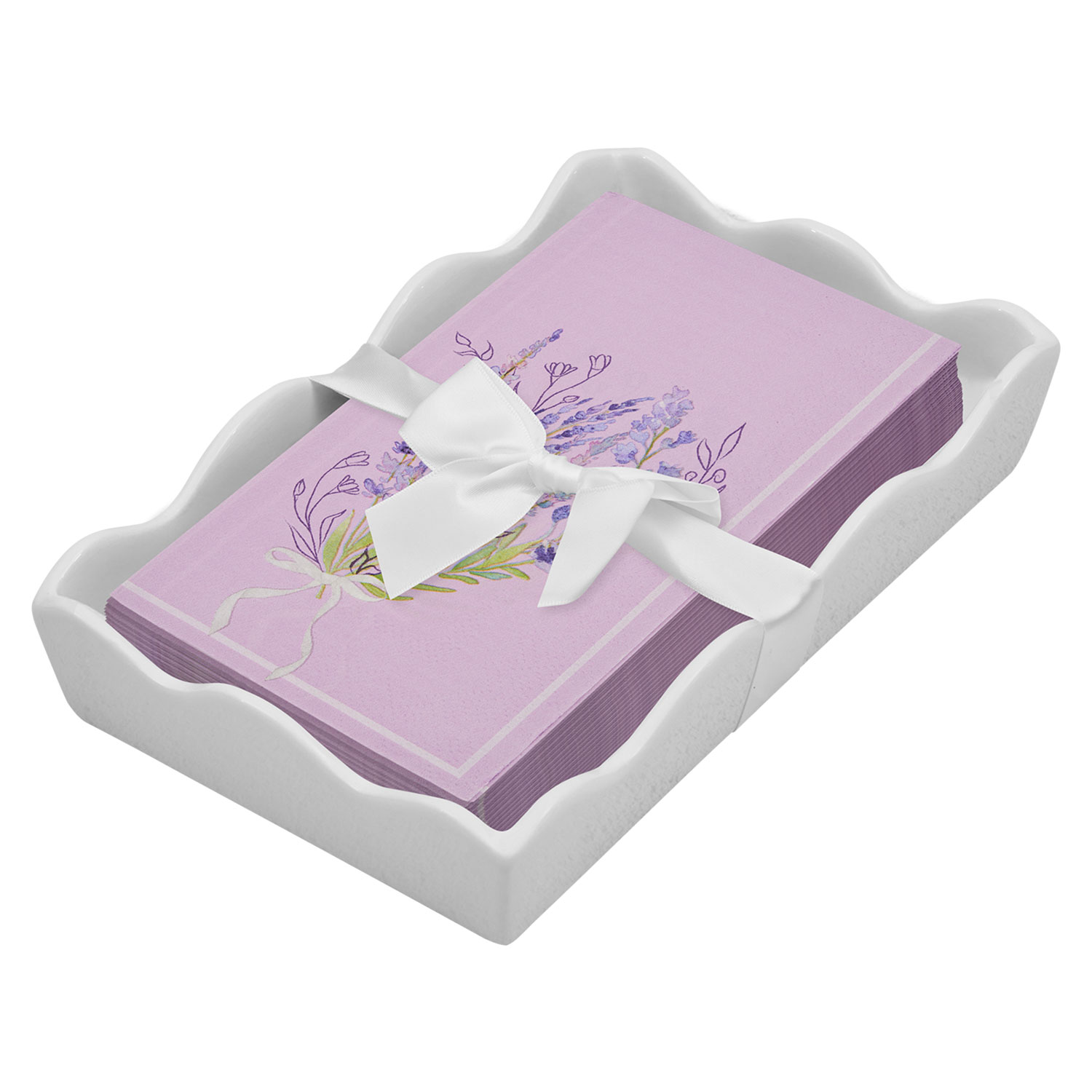 Ceramic Wave Napkin Tray with Guest Towel - Lavend