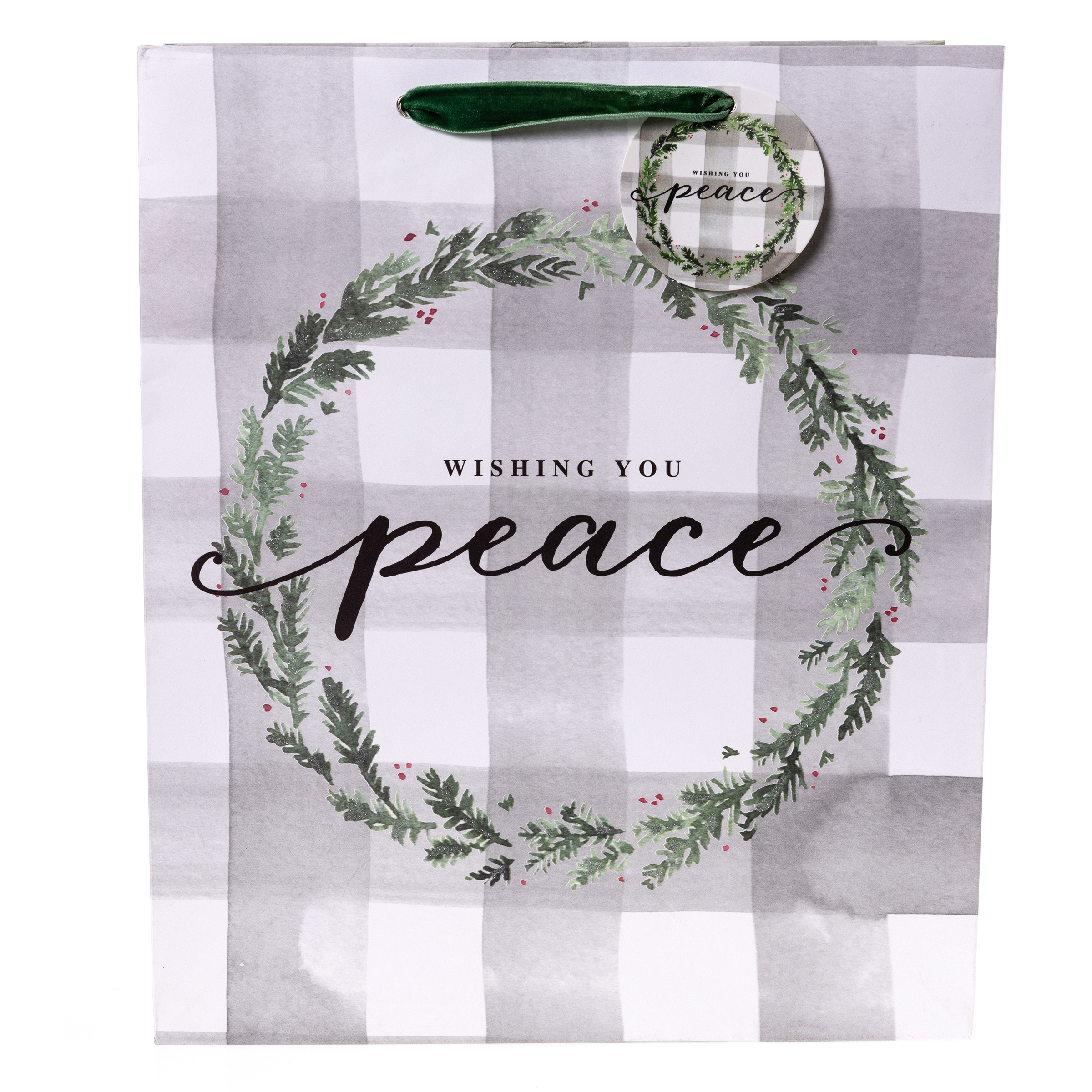 Peace Plaid Wreath Large Holiday Gift Bag
