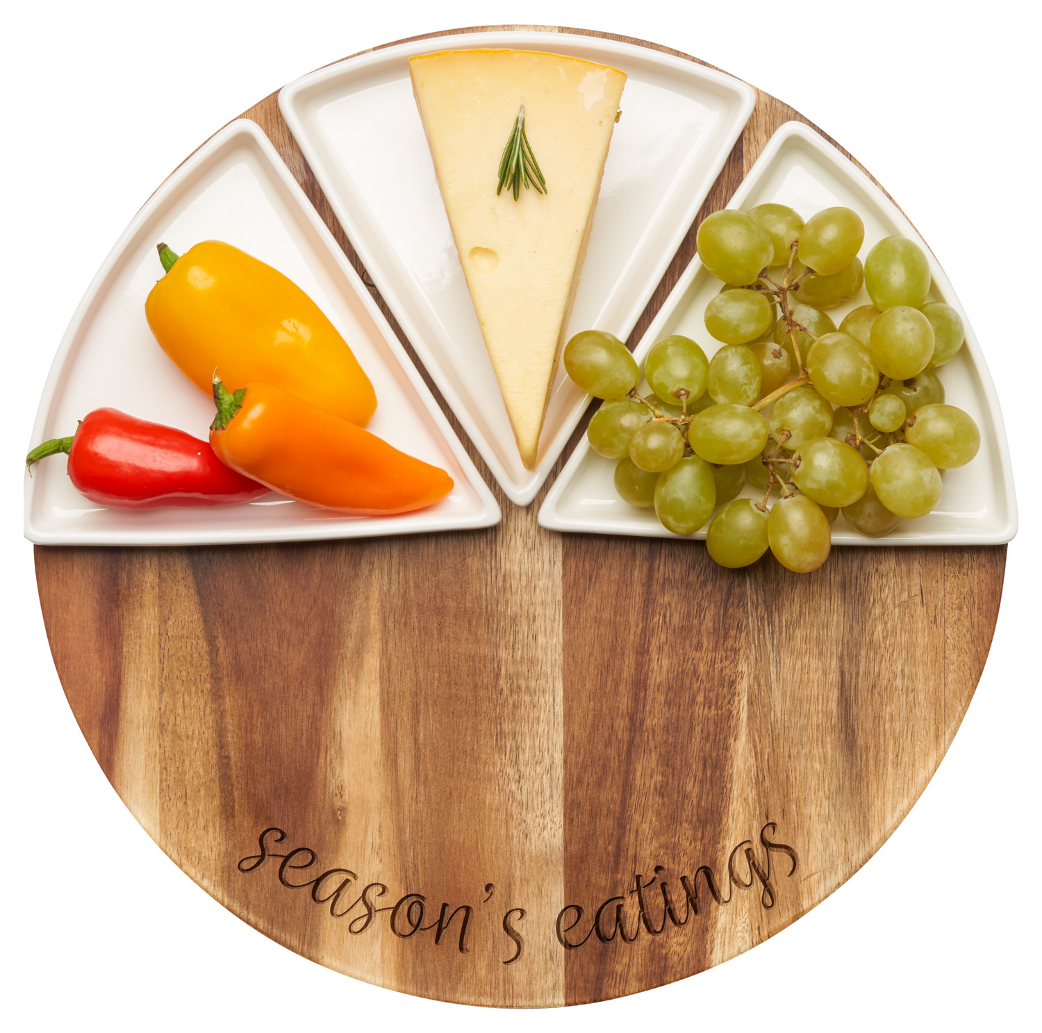 12x12" Acacia Fete Set Round - Season's Eatings
